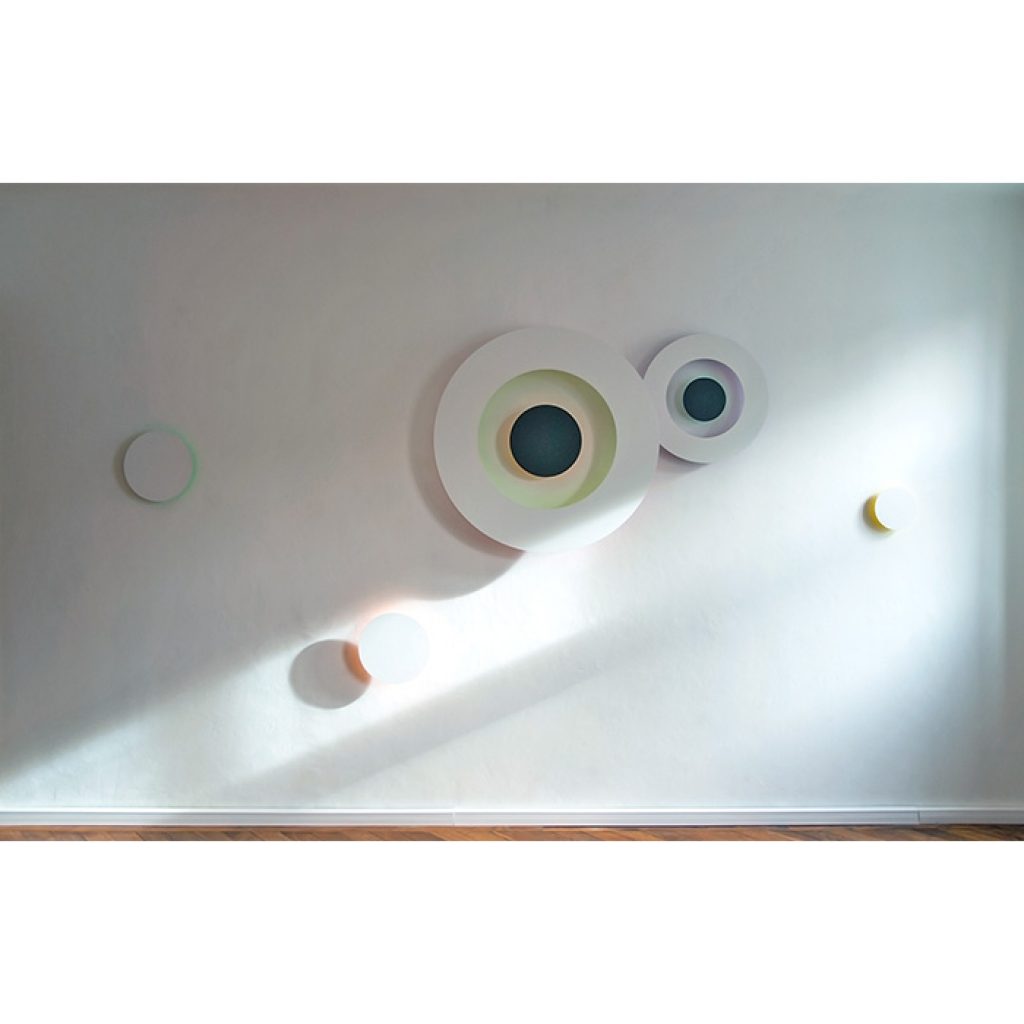 FF 10 – 13 walls are free variations with different sizes of circles and colors. Composition, colors and size depend of the customer´s space. YOUR ARTIST designs art installations for Your walls on demand.